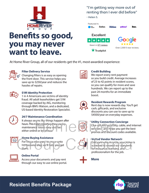 All HomeRiver Group residents are enrolled in the Resident Benefits Package (RBP) for $39.95 /month which includes a convenient option for renters insurance, HVAC air filter delivery (for applicable properties), credit building to help boost your credit score with timely rent payments, $1M Identity Protection, move-in concierge service making utility connection and home service setup a breeze during your move-in, our best-in-class resident rewards program, and much more! More details will be provided upon application.